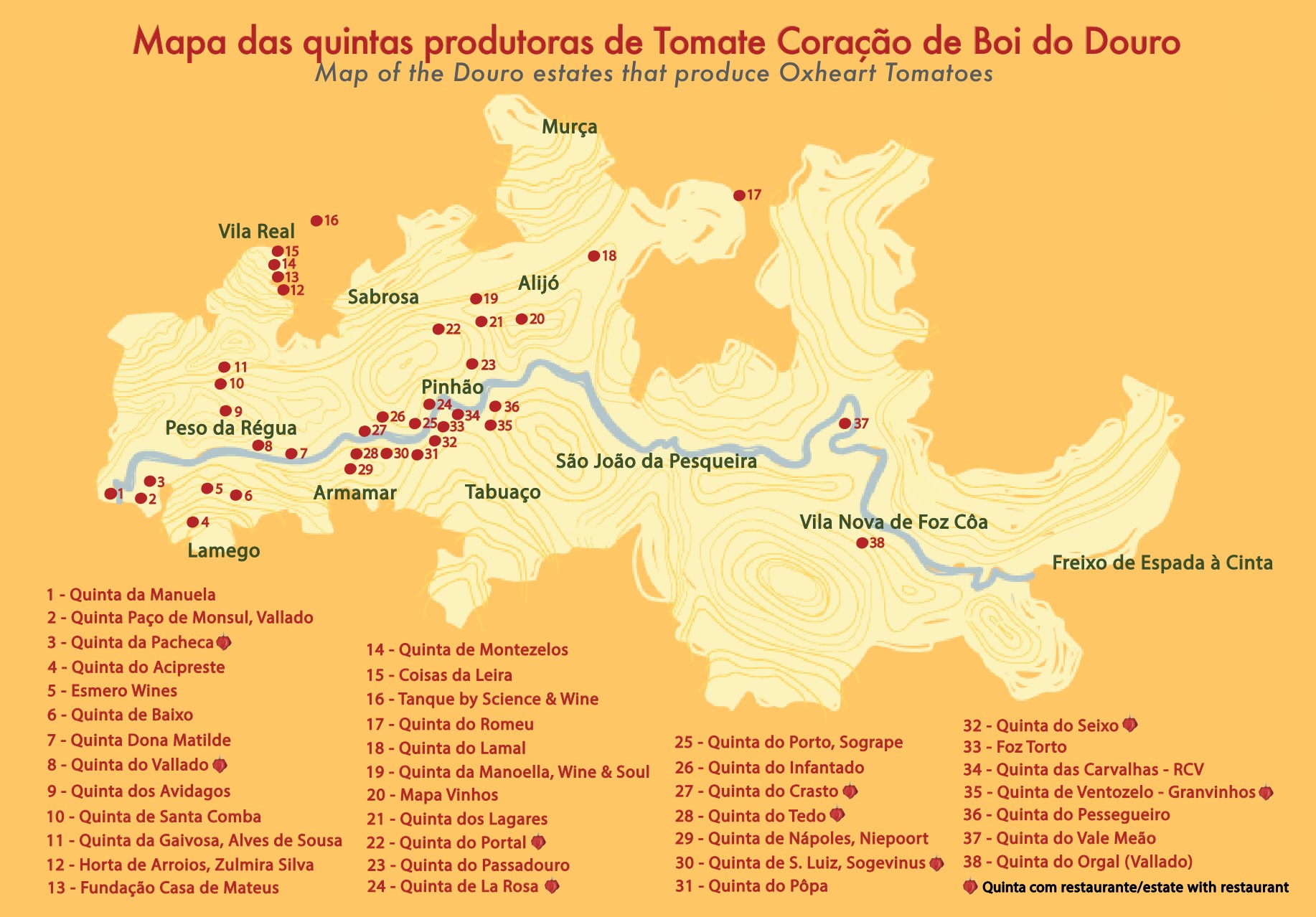 seja pela via da sua integração em produtos turísticos do território. Estes produtos e produções, com especial destaque para o Tomate Coração de Boi do Douro, mas outros produtos que saem das hortas do Douro, atingem no terroir do Douro um expoente de qualidade reconhecida pelos circuitos Gourmet nacionais e internacionais.